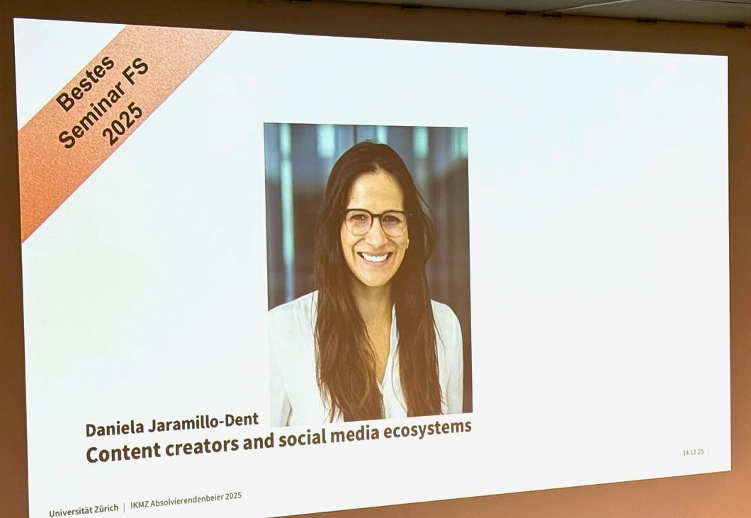 Our team member Daniela Jaramillo-Dent was honored last Friday with the Best Seminar Award by the Department of Communication and Media Research (IKMZ) at the University of Zurich.