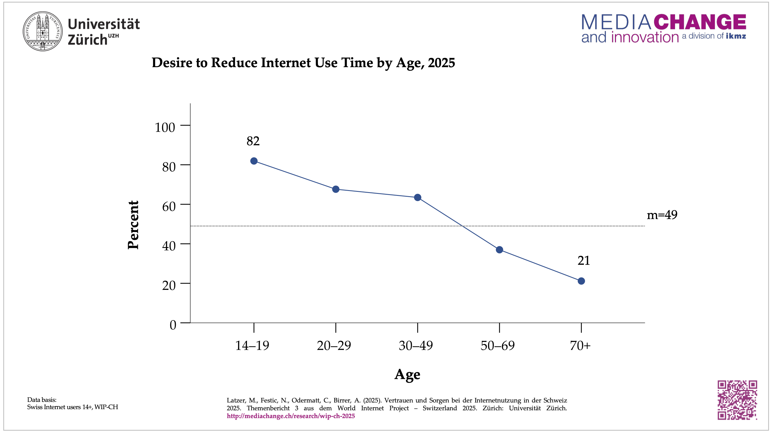 - Desire to Reduce Internet Use Time by Age, 2025 (English / German)
